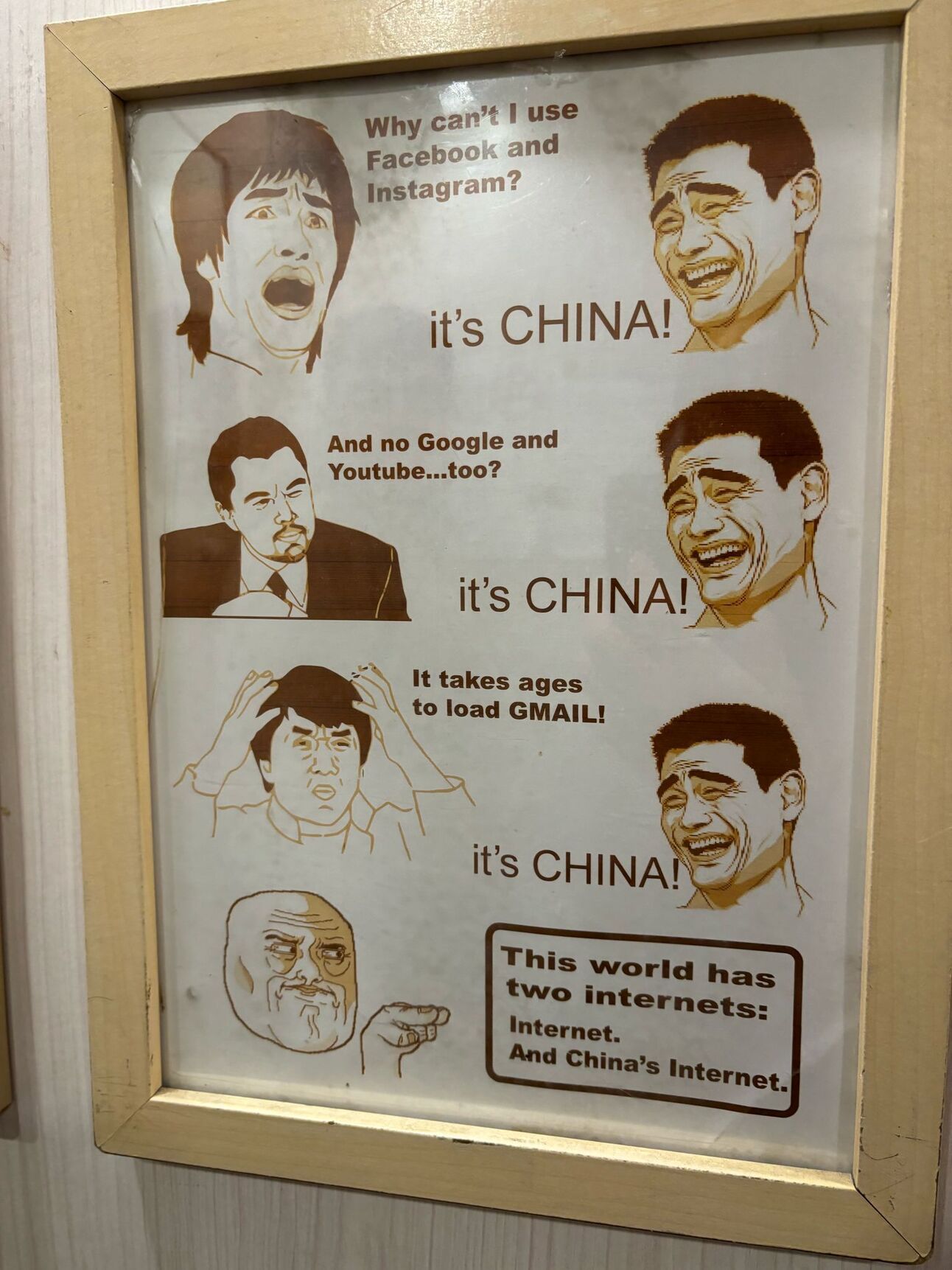 Internet est juste inaccessible pour nous, comme le disent les locaux il y a 2 internet dans le monde, l'internet et l'internet chinois.