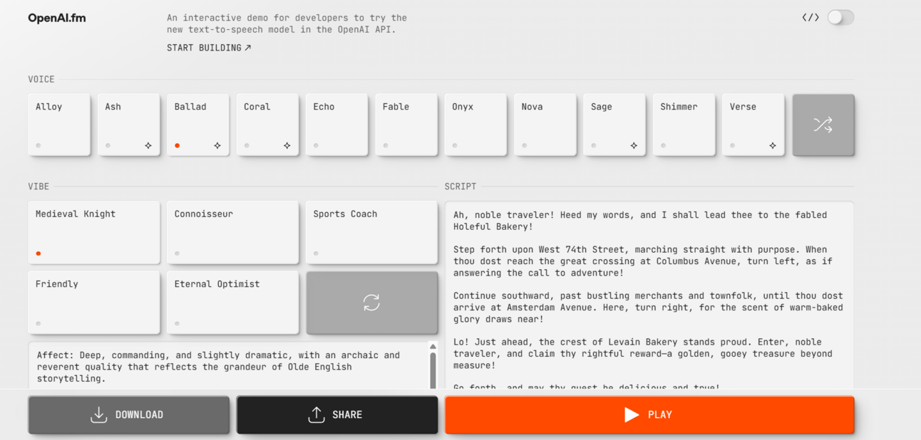 Allez y jeter un œil c'est top, je me suis éclaté avec perso ! https://www.openai.fm/