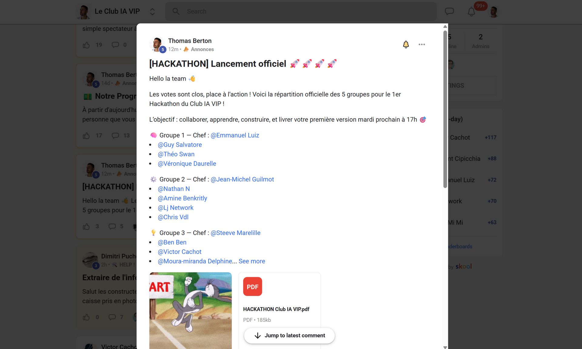 On vient de lancer un hackathon d’une semaine dans le Club IA VIP !