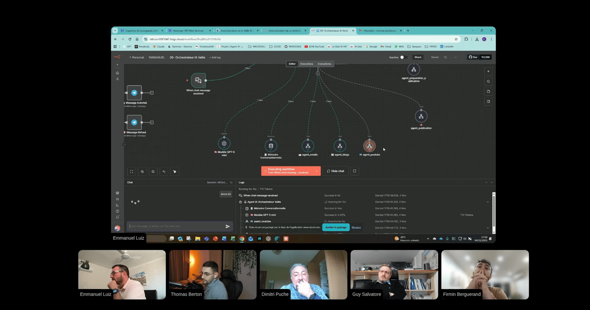 On a achevé le hackathon et les 5 groupes ont tous réussi à créer un agent IA qui peut faire de la veille sur l'actualité. En récupérant des données qui viennent de YouTube, d'articles de blogs et de newsletter.