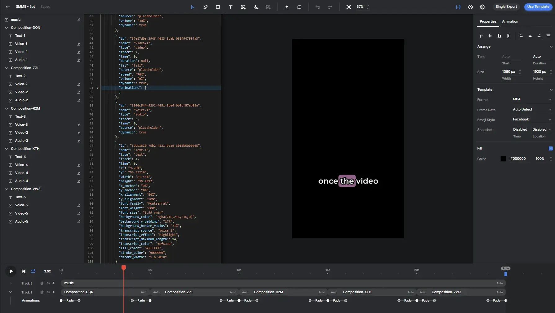 Enfin, je passe tout sur Creatomate :