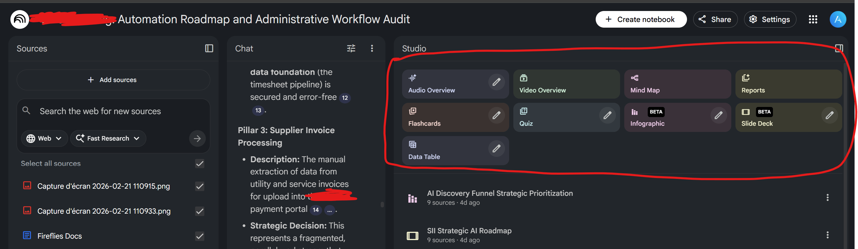 → Préparation de contenu : idées de newsletters, angles de vidéos YouTube je compile mes sources et je laisse NotebookLM brainstormer avec moi.