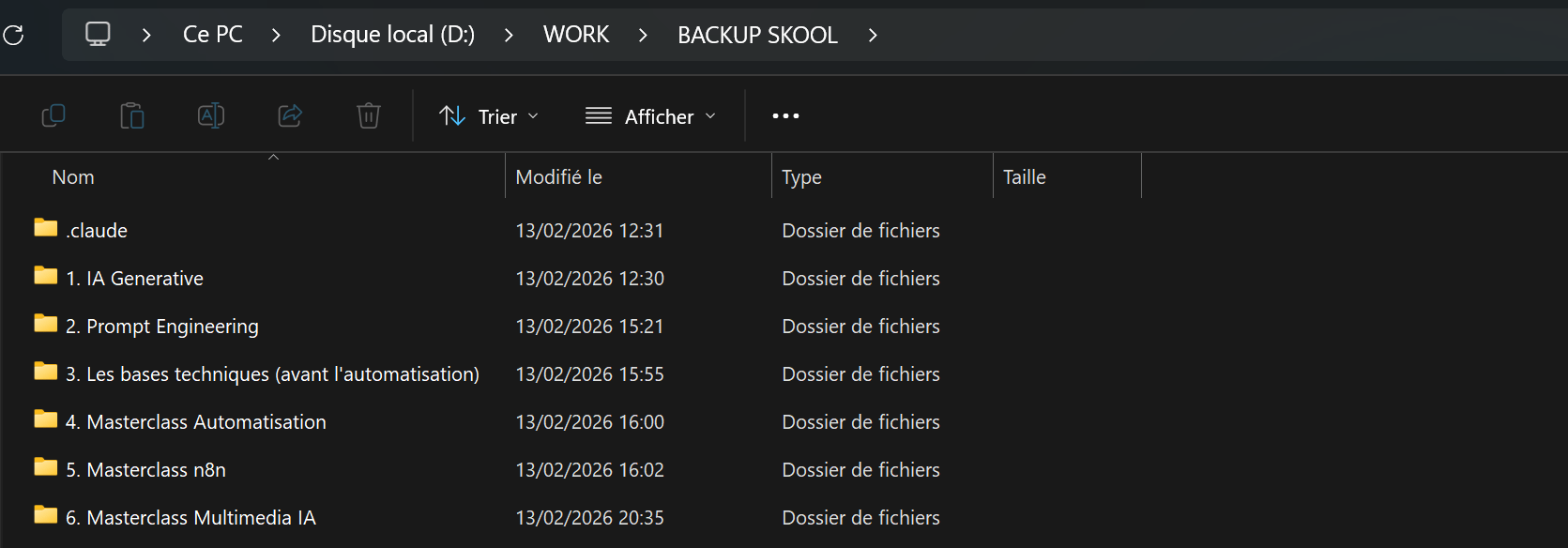La deuxième : Claude Code en local était ouverte dans mon dossier de téléchargement. Sa mission : récupérer chaque nouveau fichier, le renommer proprement avec le nom du module et de la partie, puis le déplacer dans le bon sous-dossier.